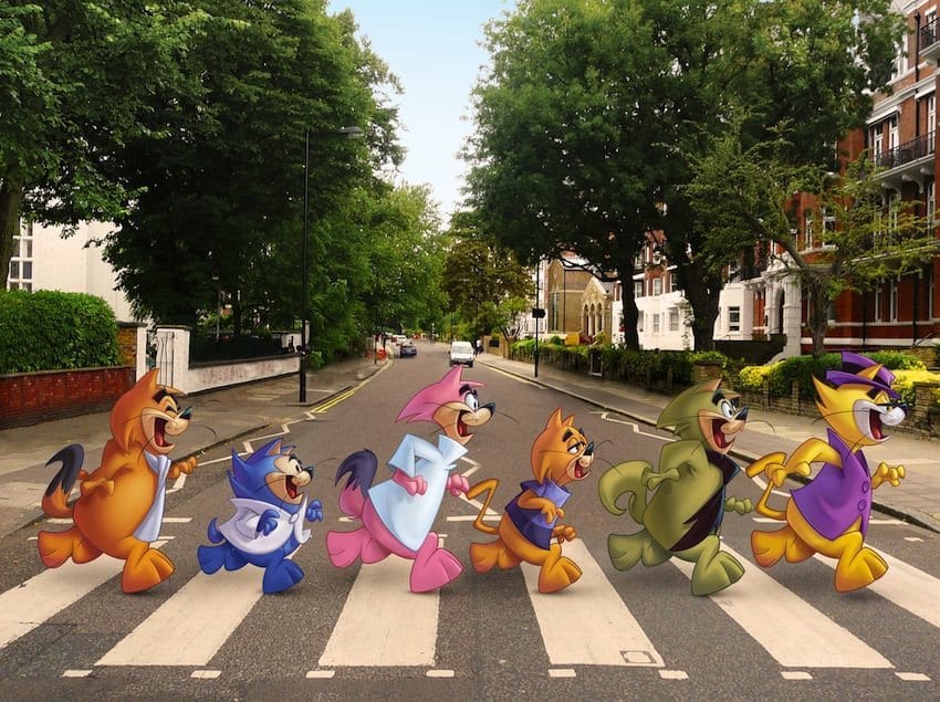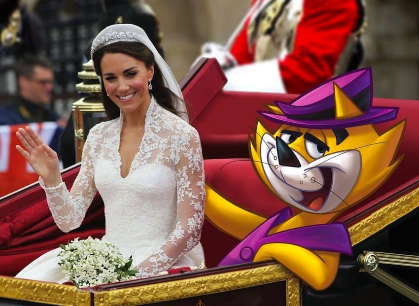 The pictures feature the wise-guy New York bred Top Cat crashing in on some iconic British shots. The first image sees Top Cat with Kate Middleton on her wedding-day, another sees Top Cat and the entire gang brining their NYC swagger to Abbey Road and the final picture sees the gang on an open-top bus cruising around London.