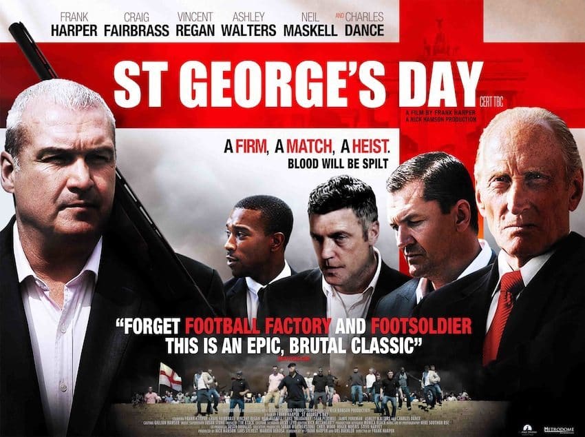 Starring Frank Harper (Bend It Like Beckham, Lock Stock and Two Smoking Barrels, The Football Factory), Craig Fairbrass (Cliffhanger), Vincent Regan (300), Neil Maskell (Kill List), Luke Treadaway (Attack The Block), Keeley Hazell (Like Crazy), Charles Dance (Game of Thrones), Nick Moran (Harry Potter) and Ashley Walters (Anuvahood) St George’s Day is the British crime thriller that follows infamous gangster cousins Micky Mannock (Harper) and Ray Collishaw (Fairbrass) as they attempt to pull off the heist of their careers – masked by football hooliganism and super firms.