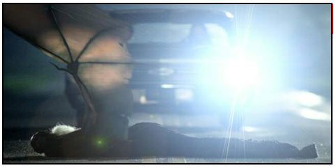 And then (as we all know having seen the film, but just in case: spoiler alert) that whoop of a gigantic, semi-transparent, thick-veined wing squirming its way out of the mangled body’s coat, shoots rigid and stands lightly swaying, neither dead nor alive, in front of the headlights of our heroes’ car.