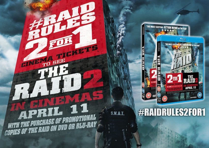 Due to the hotly anticipated arrival of The Raid 2 in cinemas on April 11th, Entertainment One UK have re-released The Raid on DVD and Blu-ray with a special Cineworld 2 for 1 ticket offer.