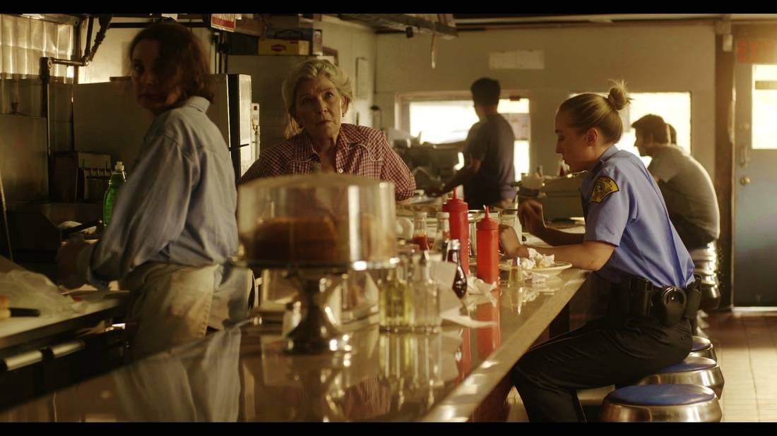The sister of one of the victims (now a police officer) grabbing a bite to eat, beginning her shift the day before the gunman’s release; the gunman waiting in his cell then signing out of the prison (in an especially mundane long-take, nearly dialogue free). And then sandwiched (and lengthiest, in themselves) within these two experiences, two equally externally quiet sequences: the sister driving her patrol car, emotion slowly encroaching upon her until she must pull over and scream; the gunman dressing in his cell (still absolutely child-like in appearance) wordless, a weight of the at once known and unknown reality of what awaits him outside of the penitentiary tattooed onto the ordinariness of the moment.
